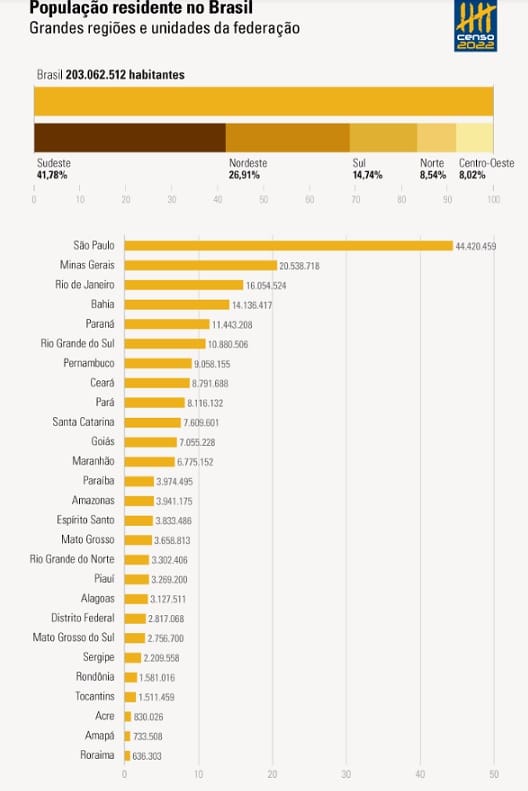 A população do país chegou a 203,1 milhões, um aumento de 6,5% frente ao censo anterior. No período houve um acréscimo de 12,3 milhões de pessoas.